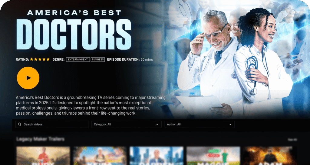 Your episode will be featured on major streaming platforms and backed by a professionally crafted press release distributed to over 100 media networks. In addition, you’ll receive customized social media content designed to help you amplify your reach and attract new opportunities. America’s Best Doctors will feature the world’s most accomplished doctors, medical field innovators, and medical leaders, many with audiences reaching millions. As these leaders promote their episodes, viewers will explore the entire season, meaning your episode will be seen by thousands, if not millions, of engaged, success-driven business leaders.